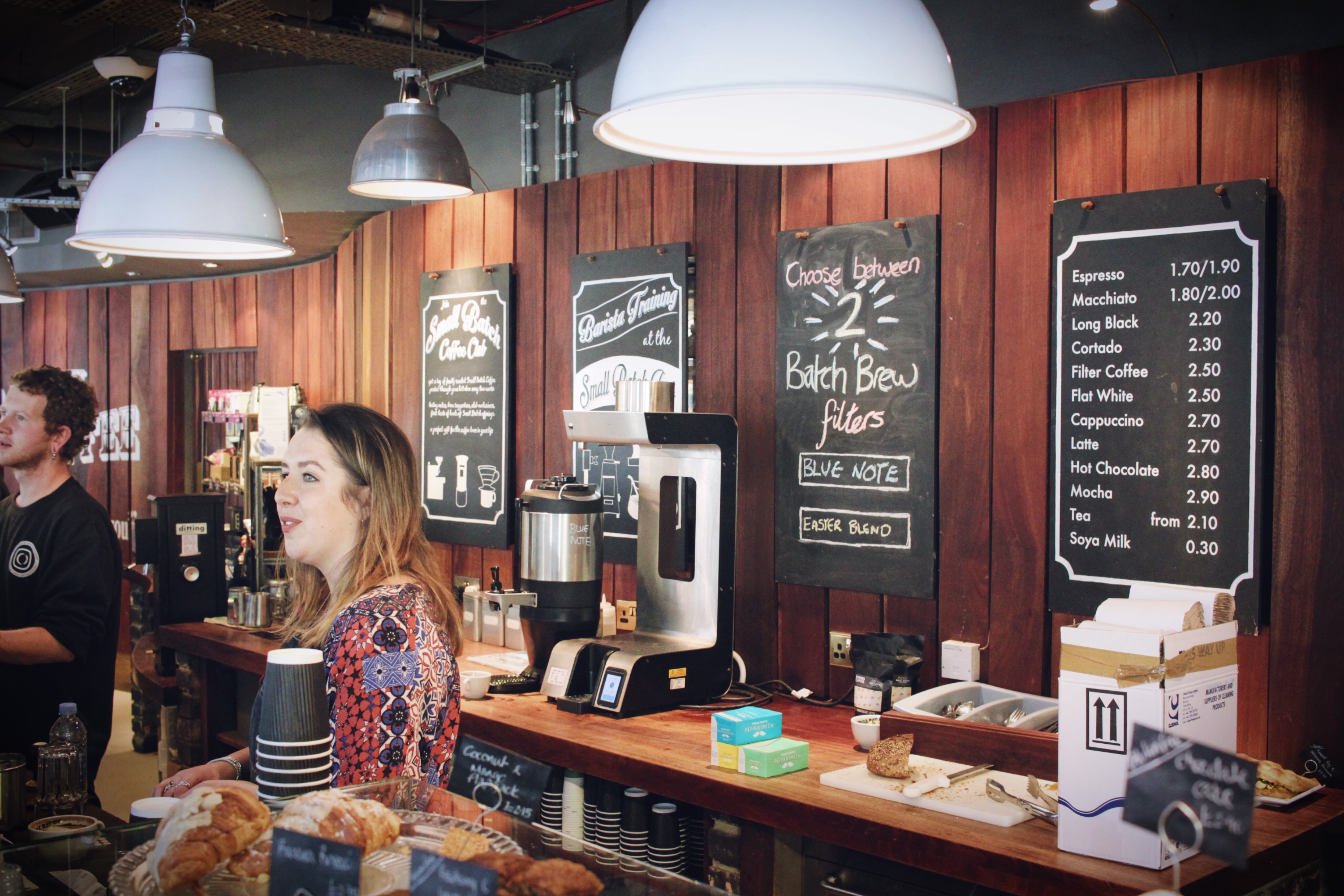 I was visiting Brighton at the end of March and found myself at Small Batch Coffee Roasters. I’d only had their coffee once before when a friend made me a Blue Note V60 (a 50-50 mix of El Salvador Finca Patagonia and Kenya Kiaga Peaberry). As I was browsing their menu, I noticed they had that filter blend as well as an Easter blend on batch brew, but what I was really happy to see was their brew bar, which included Hario siphons. I thought I’d take the opportunity to try one.