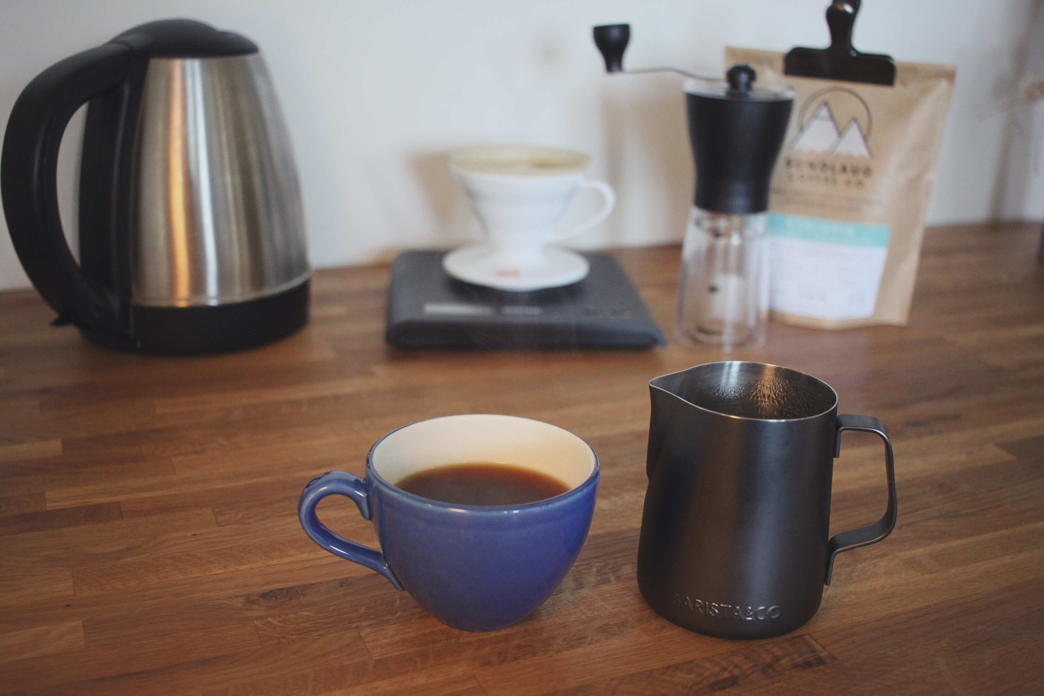 As my coffee adventures continue over time, I’ve started to really appreciate pour over coffee, in particular, Hario V60. From time-to-time, I had previously been drinking drip-brewed coffee from a budget supermarket branded coffeemaker, but after having received a Hario V60 Dripper (size 01), I began to experiment more with recipes. My previous “recipe” for my coffeemaker was to pour 1 spoonful of pre-ground coffee per cup. The result was, well, okay. Much of the result depended on the coffee I was using, but there was little room for experimenting with pour methods, bloom time, etc. Taking control of these variables allows for more experimenting, resulting in more varied recipes.